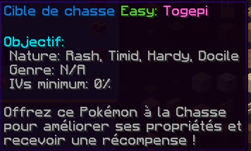 ✅ La liste des chasses disponibles ✅ Leur difficulté ✅ Les critères à respecter ✅ Vos récompenses potentielles