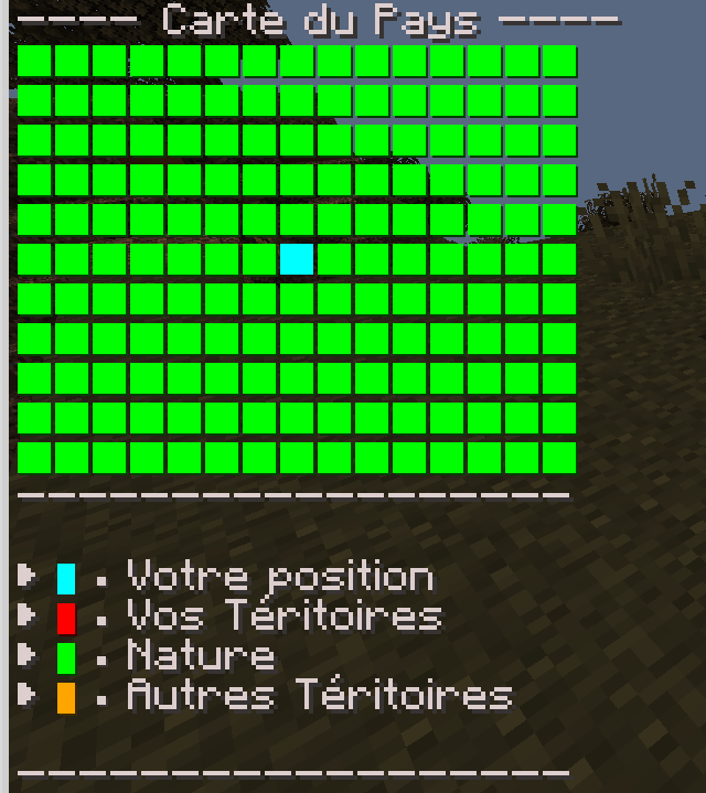 <figure><img src="https://content.gitbook.com/content/dfbYLLPmC0bkDauUMIso/blobs/fK1T67r4dafBoFy6mbY9/image.png" alt=""><figcaption><p><strong>Aperçu du </strong><mark style="color:blue;"><strong><code>/ville map</code></strong></mark></p></figcaption></figure>